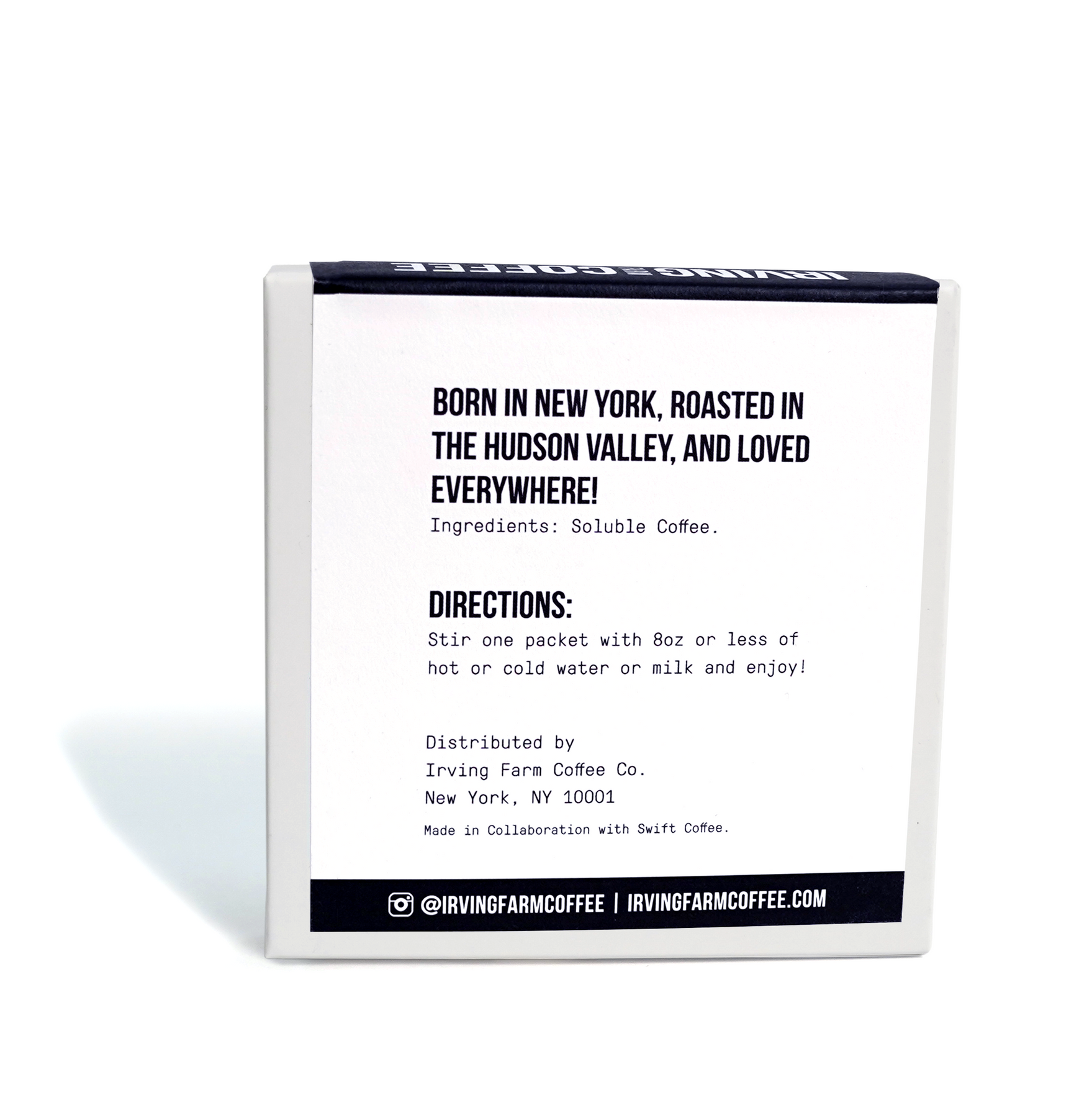 Your favorite New York Coffee, now in instant format! Just stir one packet with 12oz (or less) of hot or cold water or milk and enjoy.